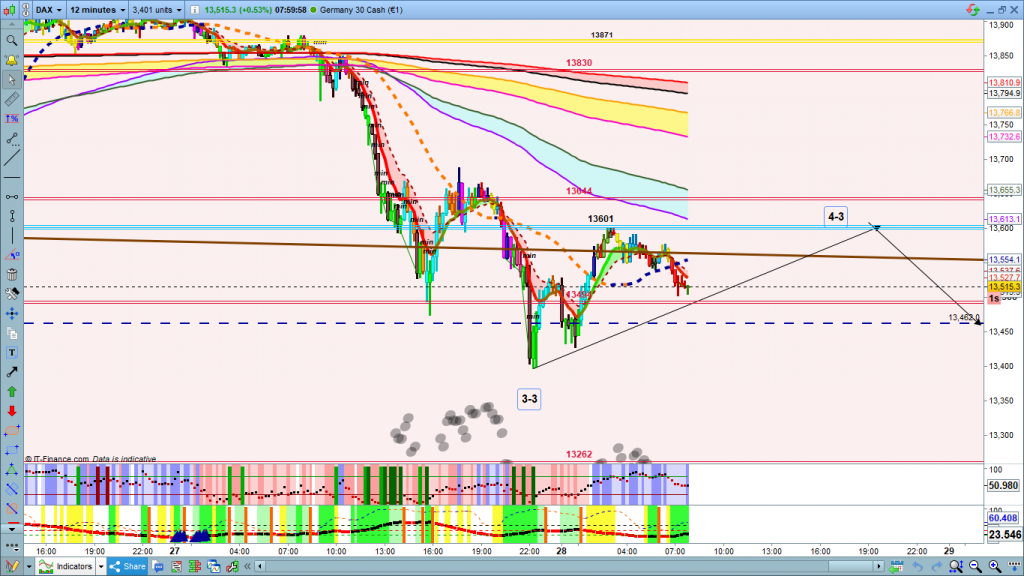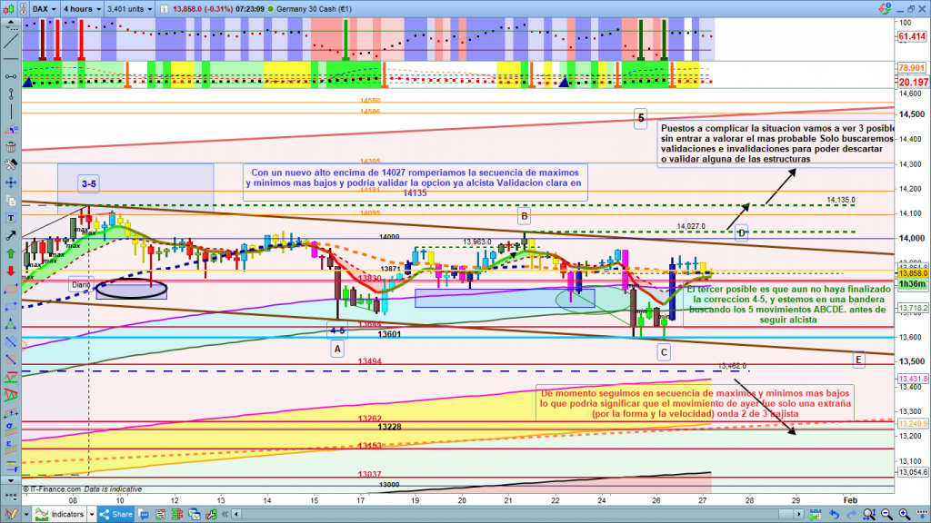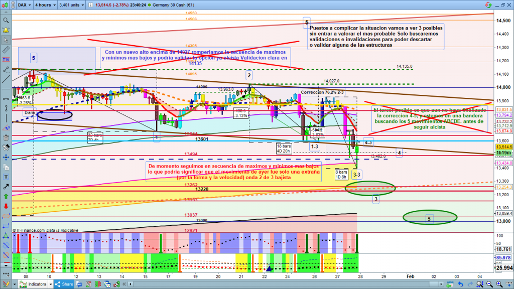Solo un comentario antes de que se publique el análisis, a estas horas de pre apertura durante sesión asiática ya ha llegado hasta la zona esperada y dibujada ayer de posible corrección de onda 4-3, en 13601. Sin embargo, es una onda 4, que suelen tener estructuras complejas, y la zona definitiva de corrección podría ser entre 13601 y 13644, mucho cuidado y control de los trades, delante de pantalla, técnica de scalping. Eso muchísima suerte y muy buenos trades.