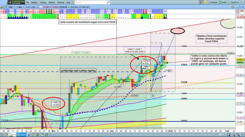 Análisis técnico Dax para el día de hoy. El PA en la cotización Dax está en 13673, Estudios con ondas de Elliot para entender qué es trading con el Dax30.