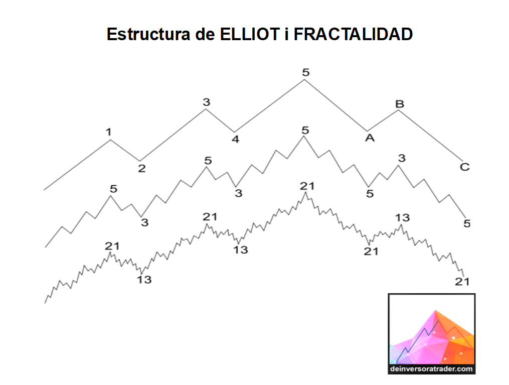 Esto es la base para operar los mercados. Este es el punto de inicio para cualquier formación sobre los mercados financieros y como operarlos de una forma sólida y rentable. Determinar la tendencia, buscar los finales de corrección e inicio de impulsos en la misma dirección de la tendencia. Y operar estos impulsos. La mente humana y las emociones en esto del trading, suelen ser siempre contrarías a la realidad. El precio está en tendencia y la mente solo piensa en que la tendencia ya se ha acabado y es el momento de entrar al revés. Nada más lejos que la realidad. Solo tenéis que mirar este último gráfico de estructura de Elliot y Fractalidad, para ver, la cantidad de veces que un impulso tiene pequeñas correcciones antes de acabar el impulso. Esto sirve para cualquier temporalidad. Solo hay que saber determinar la dirección de la tendencia primaria en gráficos de temporalidades superiores, y bajar hasta el gráfico base para el tipo de operativa que queráis realizar.