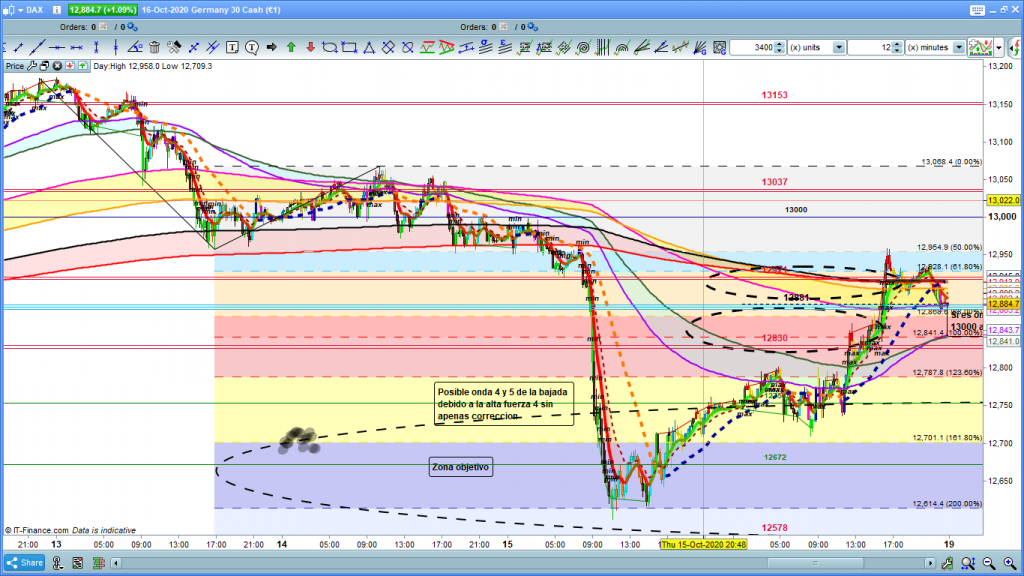 Análisis técnico Dax para el día de hoy. El PA en la cotización Dax está en 12947 Estudios con ondas de Elliot para entender qué es trading con el Dax30.