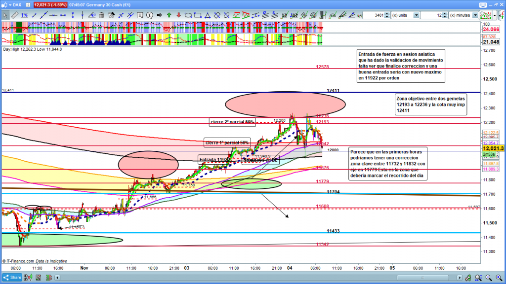 Eso ni elecciones en Usa ni nada los movimientos del precio y más del dax son solo técnicos, aquí estas fundamentales lo único que pueden dar es volatilidad con latigazos fuertes en las dos direcciones. Ayer planteábamos estos posibles movimientos, es más incluso después de los recorridos de sesión asiática, indique una zona de entrada a largos de altas probabilidades de trade positivo y rentable. 11922, incluso comentaba que se podía poner orden de apertura automática en esta zona.