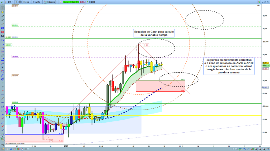 Análisis diario Dax, tipo flash corto, lectura de 2 a 4 minutos, con las claves del día. Ondas de Elliot, estructuras de precio, zonas clave y objetivos.