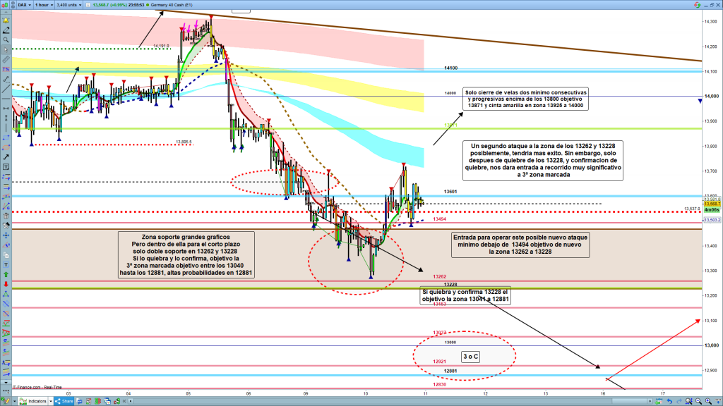 Recordemos que, la tendencia es la amiga del trader, no tengamos pensamientos contrarios al mercado, de momento estamos y seguimos en clara tendencia bajista, ya desde el 16 de noviembre del 2021, y para algunos aquello les parecía solo una pequeña corrección, para seguir subiendo. Lo que ocurre es que la zona de soporte marcada entre los 13494 y los 13228, es una fuerte zona de soporte de gráficos trimestral y mensuales, y estas zonas siempre son muy complicadas de operar en el corto plazo. Paciencia, disciplina, esperar validaciones y solo con alta probabilidad operar los recorridos hasta los objetivos marcados. Muchísima suerte y muy buenos trades.