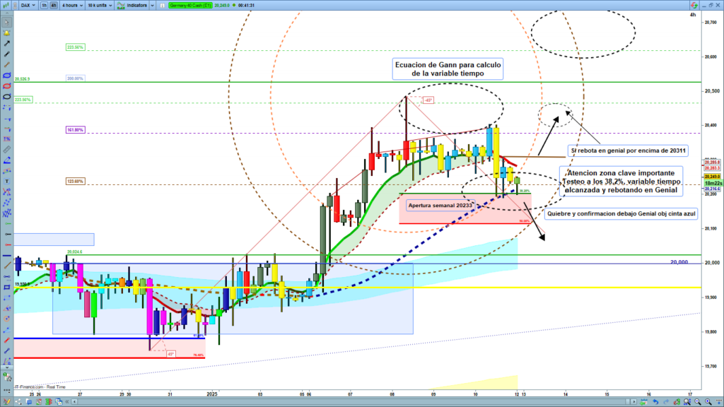 Análisis diario Dax, tipo flash corto, lectura de 2 a 4 minutos, con las claves del día. Ondas de Elliot, estructuras de precio, zonas clave y objetivos.