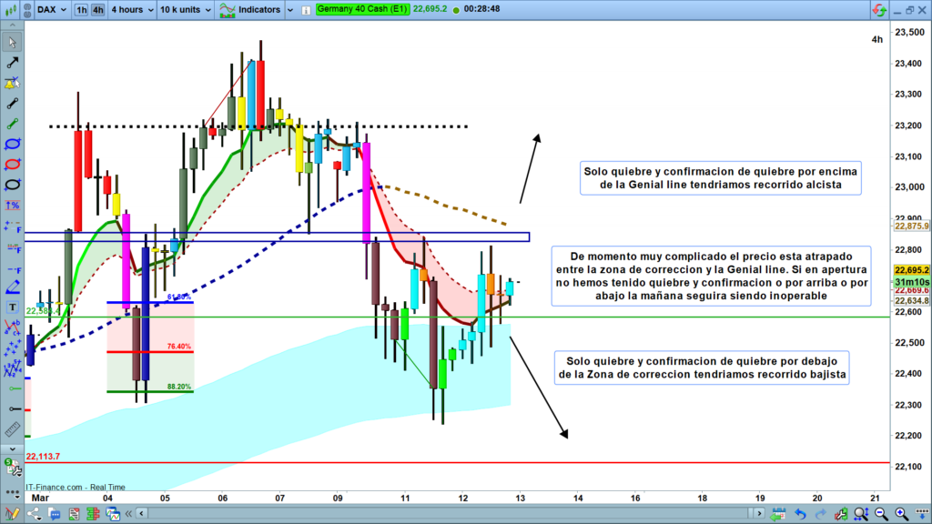 Análisis diario Dax, tipo flash corto, lectura de 2 a 4 minutos, con las claves del día. Ondas de Elliot, estructuras de precio, zonas clave y objetivos.