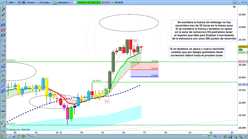 Análisis diario Dax, tipo flash corto, lectura de 2 a 4 minutos, con las claves del día. Ondas de Elliot, estructuras de precio, zonas clave y objetivos.