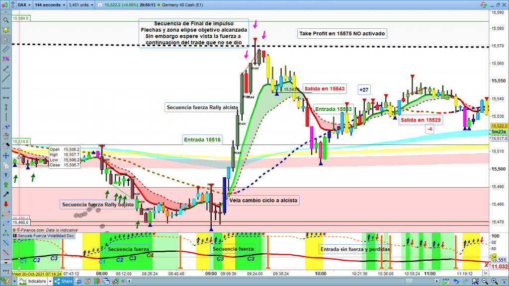 Esperaba un día complicado, pero que al menos empezara a enseñar el posible camino de la estructura más probable. Un día más seguimos en situación de indecisión total. Ayer decía lo siguiente: “Mientras sigamos por encima de la zona de corrección de 1 hora, el objetivo más probable son los 15570 a 15585. En esta zona mucha precaución, ya que ahí sí que el precio empezaría a enseñar un poco más la estructura real.” Y hemos tenido el rally esperado pero en forma de rápida pluma. También decía que ayer sería un día solo para scalping y para mí así fue. Dos únicos trades, uno con profit otro con perdidas por entrar sin secuencia de fuerza en curso.