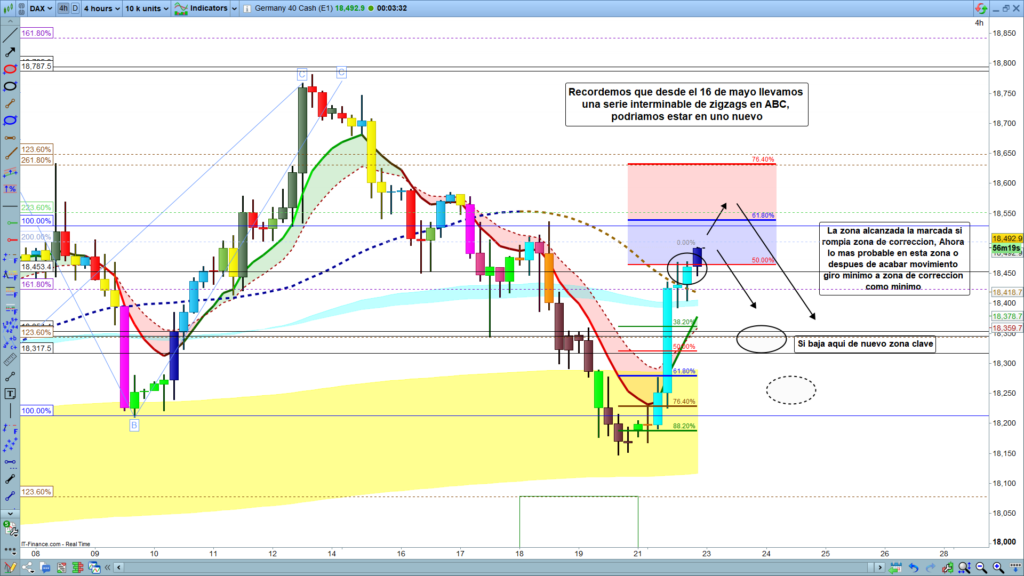 Sin embargo, me temo que, de nuevo, estemos en una nueva estructura de ABC, y ahora el precio en sesión asiática, o ya en preapertura Europea, gire entre la zona actual, los 18500 y los 18600, de nuevo en dirección bajista, para empezar, nuevo movimiento con destino al sur.
