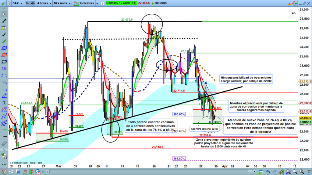 - Si el DAX recupera 22.800, podría buscar 22.832.2 y posteriormente 23.000.