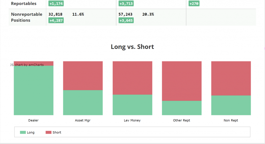 Antes tenemos varios datos, la mayoría de seguimiento de economías y algunos significativos. A la 1,30 h en Japón, Ganancias laborales anualizadas y Consumo familiar anualizado, ambos consensos muy optimistas con valores positivos muy altos, 2,5% y 6,7%, en Consumo familiar, Japón de momento no se ve demasiado afectado por las circunstancias del resto. A las 8 h, en Alemania, Producción industrial anualizada y Ventas minoristas, consensos esperados -0,8%, y las ventas minoristas, -5,1%, la diferencia con Japón espectacular, más de 11 puntos. A las 14,30 h, el momento de los datos empleo Usa. Nóminas no agrícolas, dato anterior, 315K, consenso esperado 250K. Promedio de ingresos por horas, dato anterior, 5,2%, consenso esperado 5,1%, crecimiento de los salarios igual que en España. Tasa de participación de fuerza laboral, dato anterior, 62,4%, consenso, 62,2%. Promedio de horas trabajadas a la semana, anterior y consenso sin cambios, 34,5. Tasa de desempleo, anterior y consenso, 3,7%. Tasa de subempleo, dato anterior, 7%, consenso 6,8%. A la misma hora en Canadá, también datos de empleo, Salarios promedio por hora, 5,58%, sin consenso. Cambio neto de empleo, dato anterior, -39,7K, consenso, 20K, Tasa de desempleo, anterior y consenso, 5,4%. A las 21,30 como cada viernes, Posiciones netas no comerciales COT, como siempre con los datos del cierre del martes. Pero dada la volatilidad tan alta que tenemos últimamente con grandes giros, siempre está bien saber donde tienen o tenían el dinero invertido, los institucionales y los muy grandes Bancos y Fondos, esta información, haciendo un seguimiento semanal, de estos datos y viendo las evoluciones de los mercados, suelen dar una idea bastante clara. Aunque no sirva para intradia, dada la publicación de los datos semanales, sí que da una idea bastante clara a nivel tendencial. Una web interesante para noveles es https://tradingster.com, aunque hay la oficial, www.cftc.gov, con menos detalle y hay otras, cada trader utiliza la que le es más cómoda. Ya que me he metido en el jardín de los informes COT , al menos os cuelgo tres capturas para que entendáis un poco como van. Aunque me reitero, esto es más para inversores a largo plazo, recordar siempre que cuando se publican los viernes al cierre 21,30 h, son con los datos del martes, 3 días antes y en 3 días pasan muchas cosas, pero haciendo un seguimiento durante un amplio periodo de tiempo, se acaban adivinando patrones.