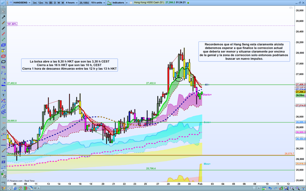 Corto Plazo: Si entra dicha fuerza, el recorrido proyectado es hasta los 24.000 puntos (parte superior de la cinta rosa y línea Genial semanal).