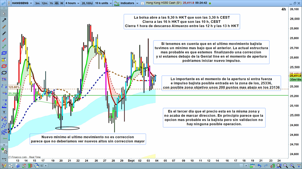 Análisis diario Dax, tipo flash corto, lectura de 2 a 4 minutos, con las claves del día. Ondas de Elliot, estructuras de precio, zonas clave y objetivos.