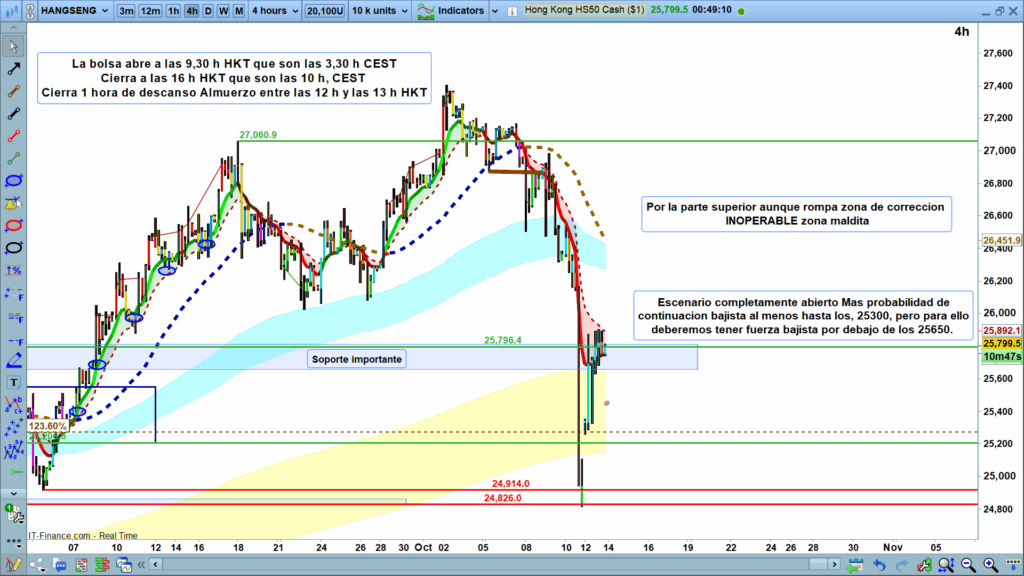 Mi escenario principal es bajista. Creo que hay una alta probabilidad de que la caída continúe, con un objetivo inicial que he fijado en la zona de los 25,300. Sin embargo, para confirmar esta idea, necesito ver una clara «fuerza bajista por debajo de los 25,650».
