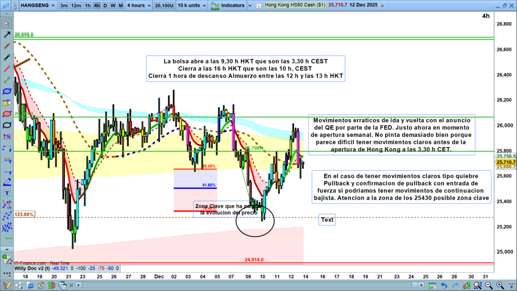 Analizando el gráfico del Hang Seng en esta apertura semanal, percibo un escenario de movimientos erráticos de ida y vuelta, condicionados fuertemente por el reciente anuncio de QE (Flexibilización Cuantitativa) por parte de la FED.