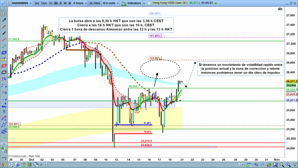 A mi juicio, el escenario bajista ha perdido fuerza. El precio ha mostrado una clara fortaleza al romper al alza la zona de consolidación y superar el nivel clave de 26,068.1.
