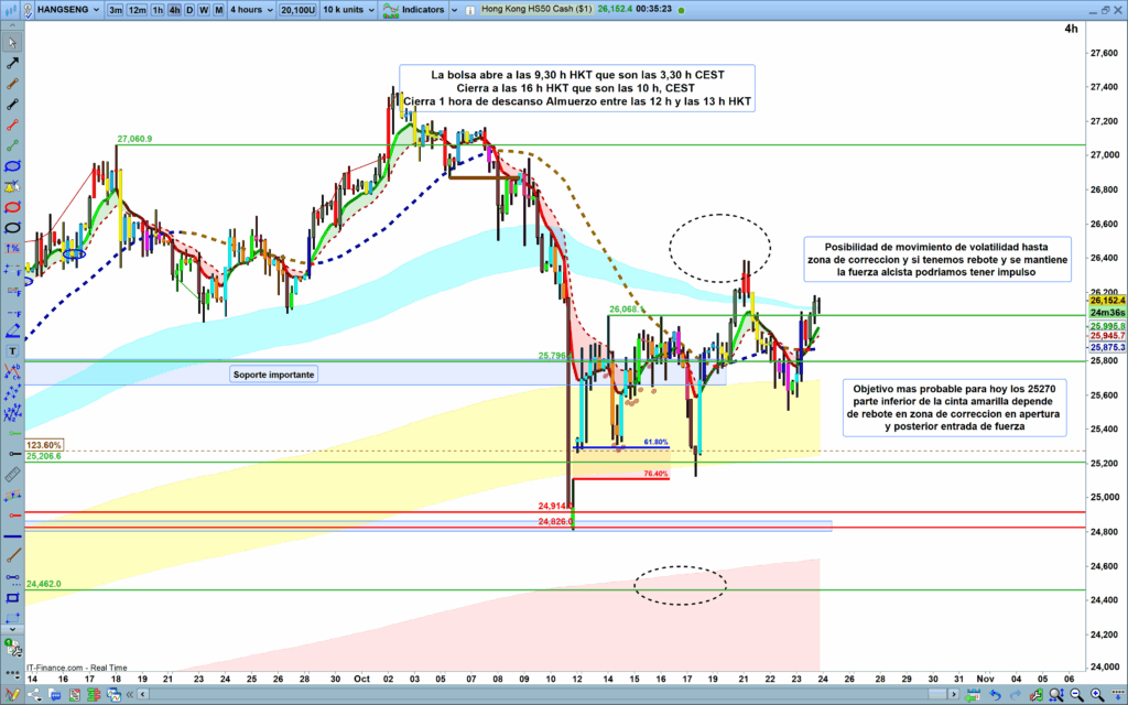 Tras varios días de indecisión, observo que el precio finalmente ha mostrado una clara fuerza alcista, rompiendo al alza la zona de consolidación en la que se encontraba. El escenario bajista que contemplábamos, con objetivo en los 25,270, ha quedado, a mi juicio, invalidado.