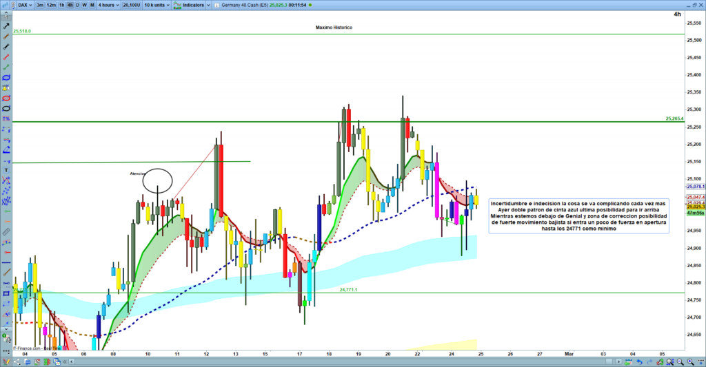 Análisis diario Dax, tipo flash corto, lectura de 2 a 4 minutos, con las claves del día. Ondas de Elliot, estructuras de precio, zonas clave y objetivos.