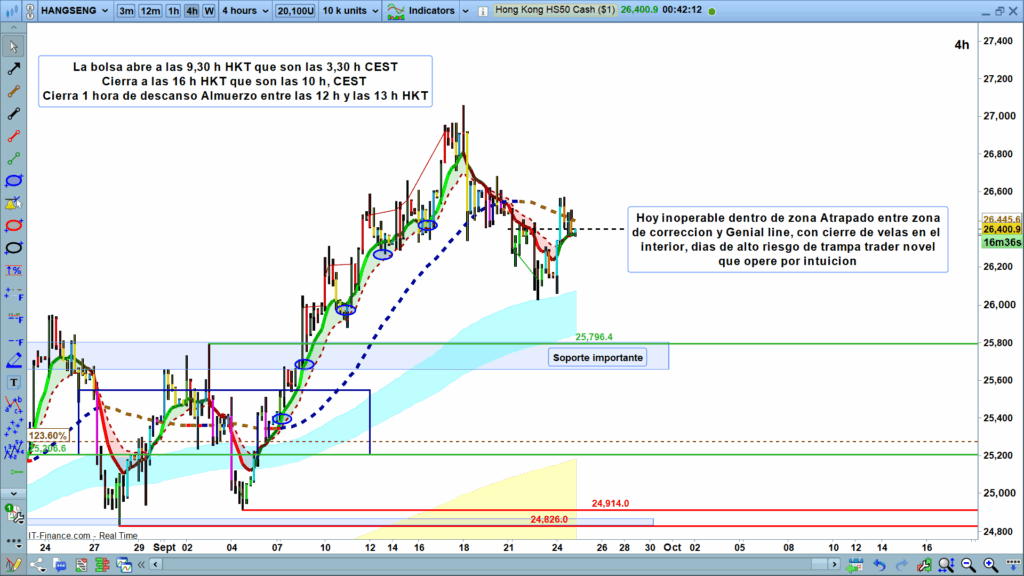 - Soporte Clave: Se ha identificado un soporte importante en el nivel de 25,796.4. Este es un precio a vigilar en caso de que el mercado decida tomar una dirección bajista.