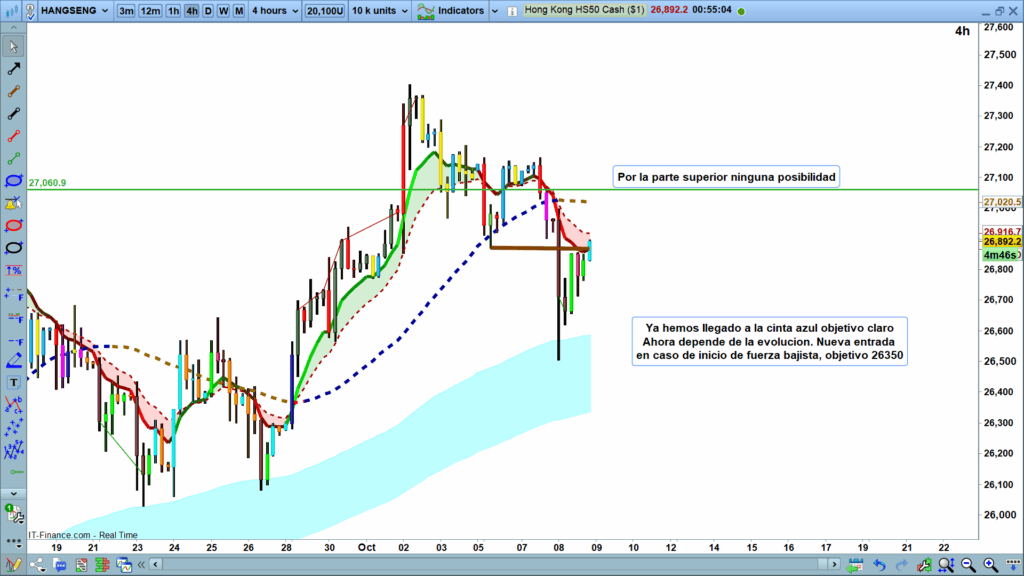 Estoy atento a un posible reinicio de la fuerza vendedora. Si observo una nueva y clara señal de «fuerza bajista», consideraría una nueva entrada en corto. Para este potencial movimiento, he fijado un siguiente objetivo en la zona de los 26,350.