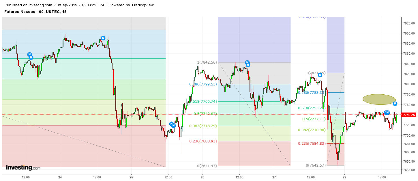 Ayer por la tarde comentaba en el foro del nasdaq que seguía este escenario. Por encima de 7783 buscaría el siguiente fibo (7821) y en asiática lo ha tocado (7825).