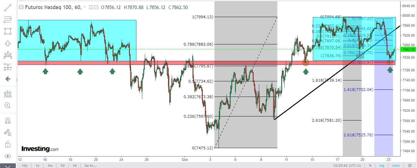 Ayer comentaba que buscar 7994 y bien no tocarlos o rechazar ese nivel podríamos buscar 7910-7900 y al final el precio paró en el mismo nivel que el viernes.