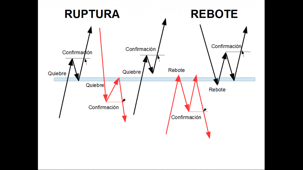 Para acabar este artículo escrito en varias etapas durante el fin de semana un breve croquis de lo que es ruptura y confirmación o rebote y confirmación, lo he explicado muchas veces, pero como siempre hay usuarios nuevos lo volveré a repetir. Tener en cuenta que si buscáis una entrada en estas zonas SoR, primero la confirmación y después la entrada con vuestro sistema, ya que así es la única forma de tener un cierto control personal de cada uno/a sobre la operativa que estáis realizando. Nunca penséis que el precio se va, fijaros que de zona a zona en las marcadas la semana pasada hay casi 200 puntos, si esperáis confirmación y después aún esperáis entrada por vuestro sistema, cualquier trade con sistema testado, os hubiera dado un par de trades esta semana de unos 80 a 100 puntos cada uno para un profit de un 1,2% en la semana del capital utilizado por el apalancamiento que tenga cada uno/a, minorista o profesional. un grandísimo resultado, aunque no siempre el mercado da estos recorridos.