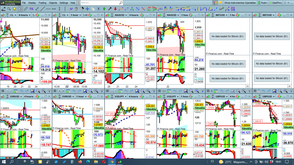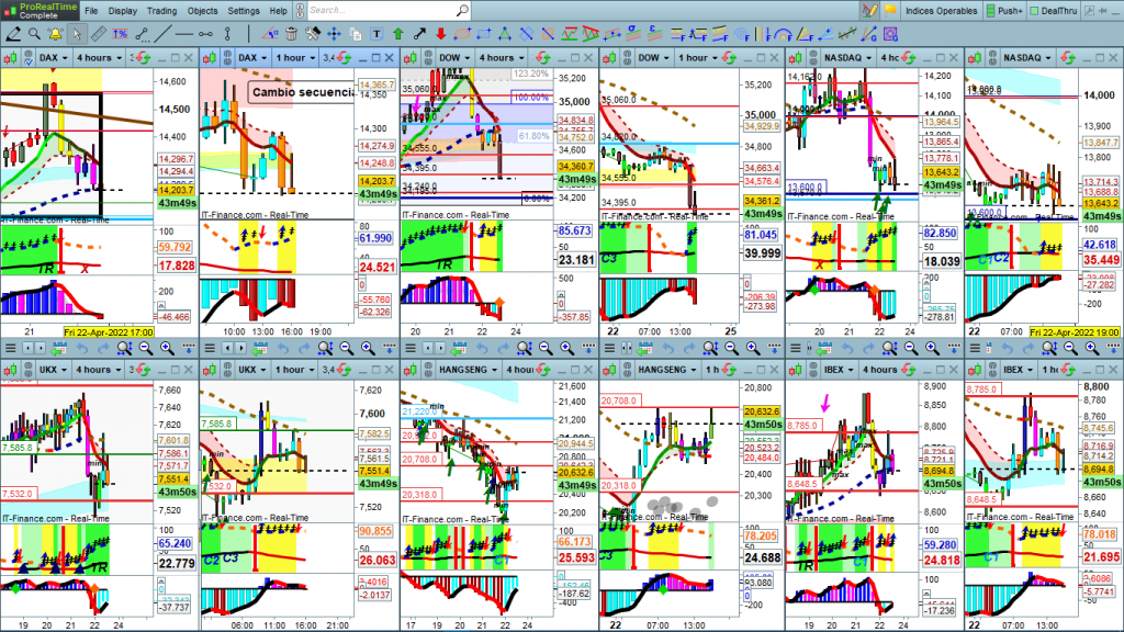 El fin de esta sección es la de conocer que instrumento, de los más activos, es operable en un momento determinado, porque hay fuerza en el mercado y, por tanto, tiene recorridos significativos. Además de la información imprescindible del gráfico, a nivel de cotas históricas, soportes/resistencias e indicadores, cada instrumento va acompañado de dos osciladores. Un oscilador que marca la fuerza, o falta de ella, en un instrumento en un momento determinado, y otro oscilador que marca la tendencia del momento y estructura en curso para ayudar en la toma de decisiones.