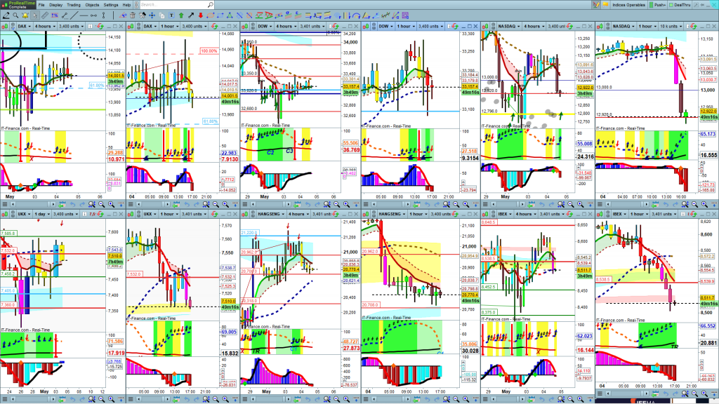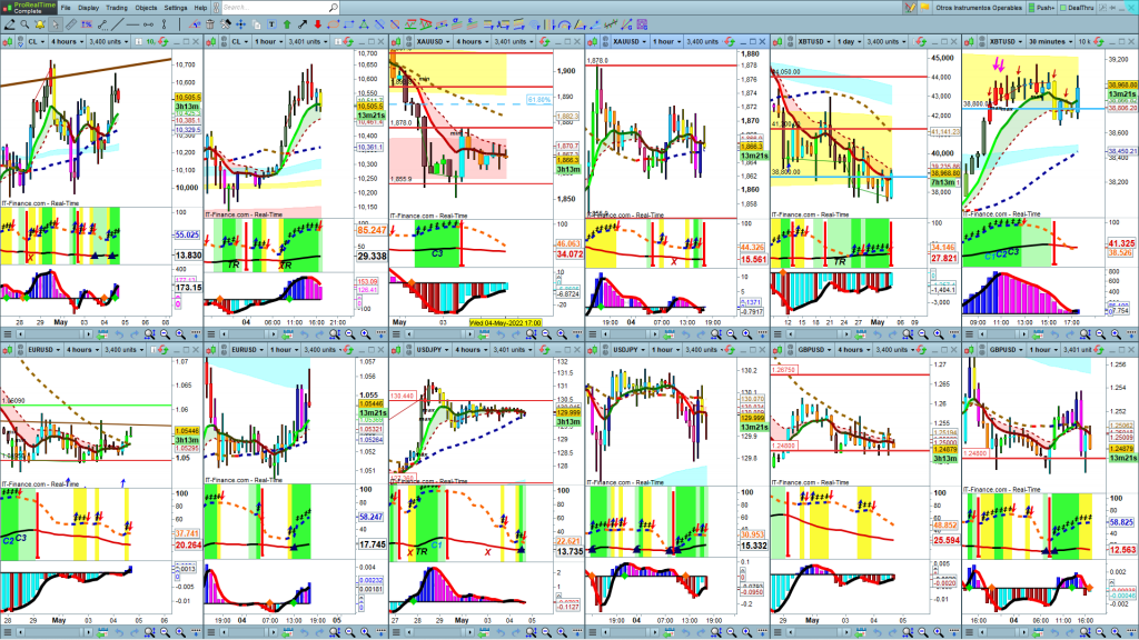 El fin de esta sección es la de conocer que instrumento, de los más activos, es operable en un momento determinado, porque hay fuerza en el mercado y, por tanto, tiene recorridos significativos. Además de la información imprescindible del gráfico, a nivel de cotas históricas, soportes/resistencias e indicadores, cada instrumento va acompañado de dos osciladores. Un oscilador que marca la fuerza, o falta de ella, en un instrumento en un momento determinado, y otro oscilador que marca la tendencia del momento y estructura en curso para ayudar en la toma de decisiones.